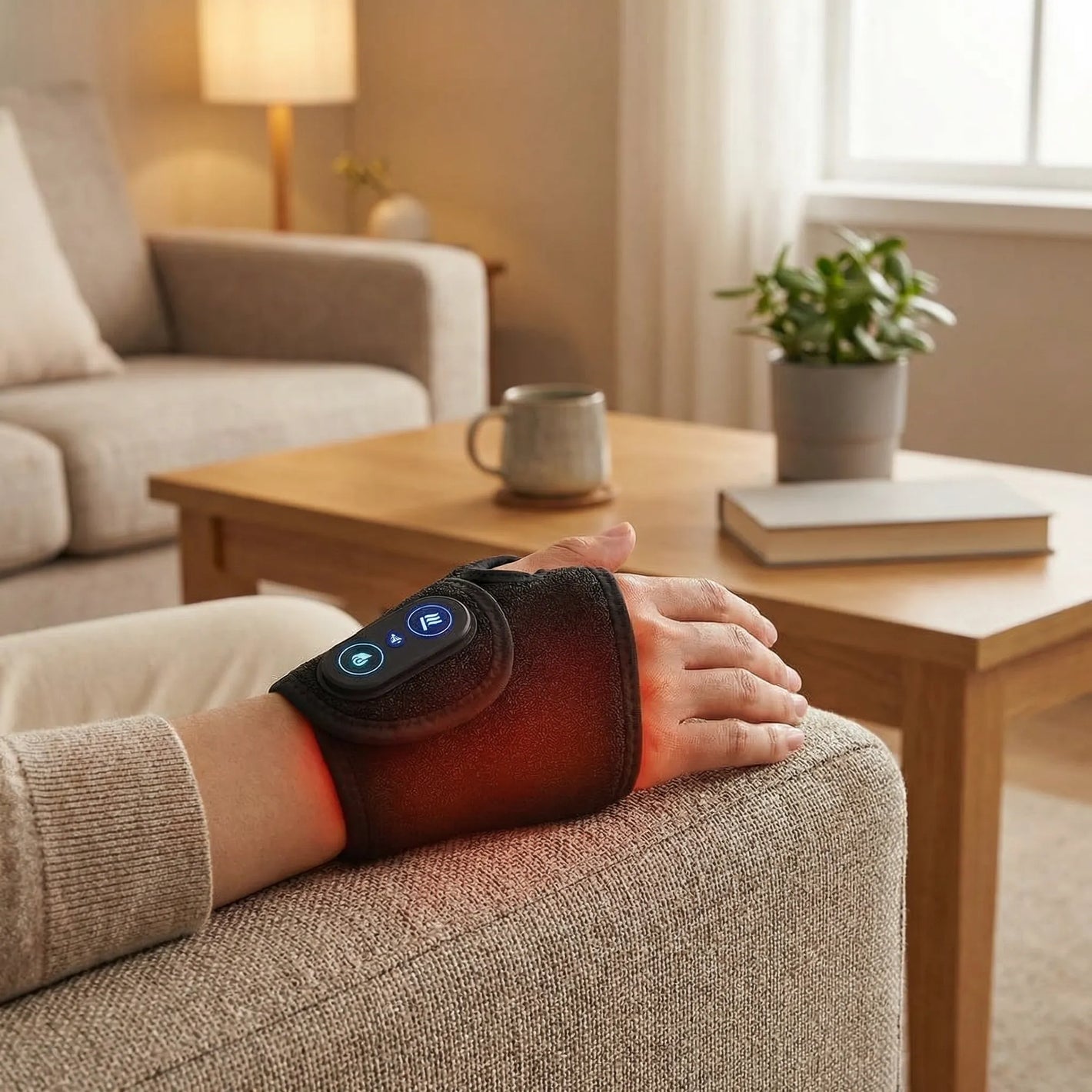 Jour 1. Une chaleur douce enveloppe votre poignet. Pas de douleur, pas de gêne juste une sensation apaisante pendant que la lumière pénètre les tissus en profondeur. Vous lisez, vous travaillez, vous regardez un épisode. Au bout de 15 minutes, l'appareil s'éteint tout seul.