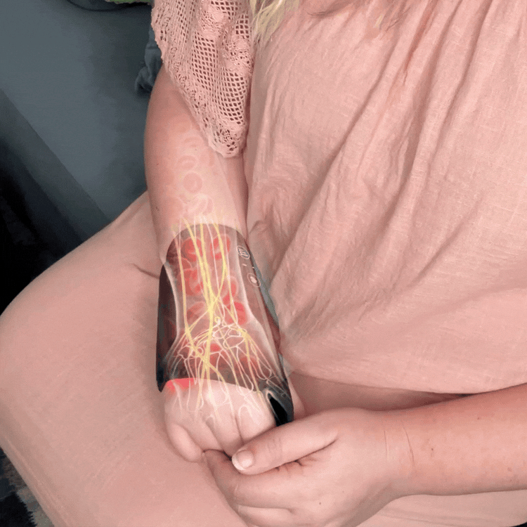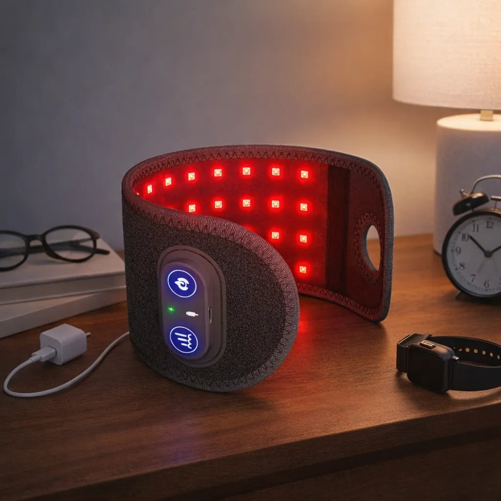 Le RedNove™ combine deux longueurs d'onde précises — rouge (660 nm) et infrarouge (850 nm) — pour pénétrer les tissus du poignet en profondeur. La lumière rouge traite l'inflammation de surface. L'infrarouge va plus loin : il atteint le nerf médian, relance les mitochondries cellulaires, et restaure la microcirculation au cœur du canal carpien.